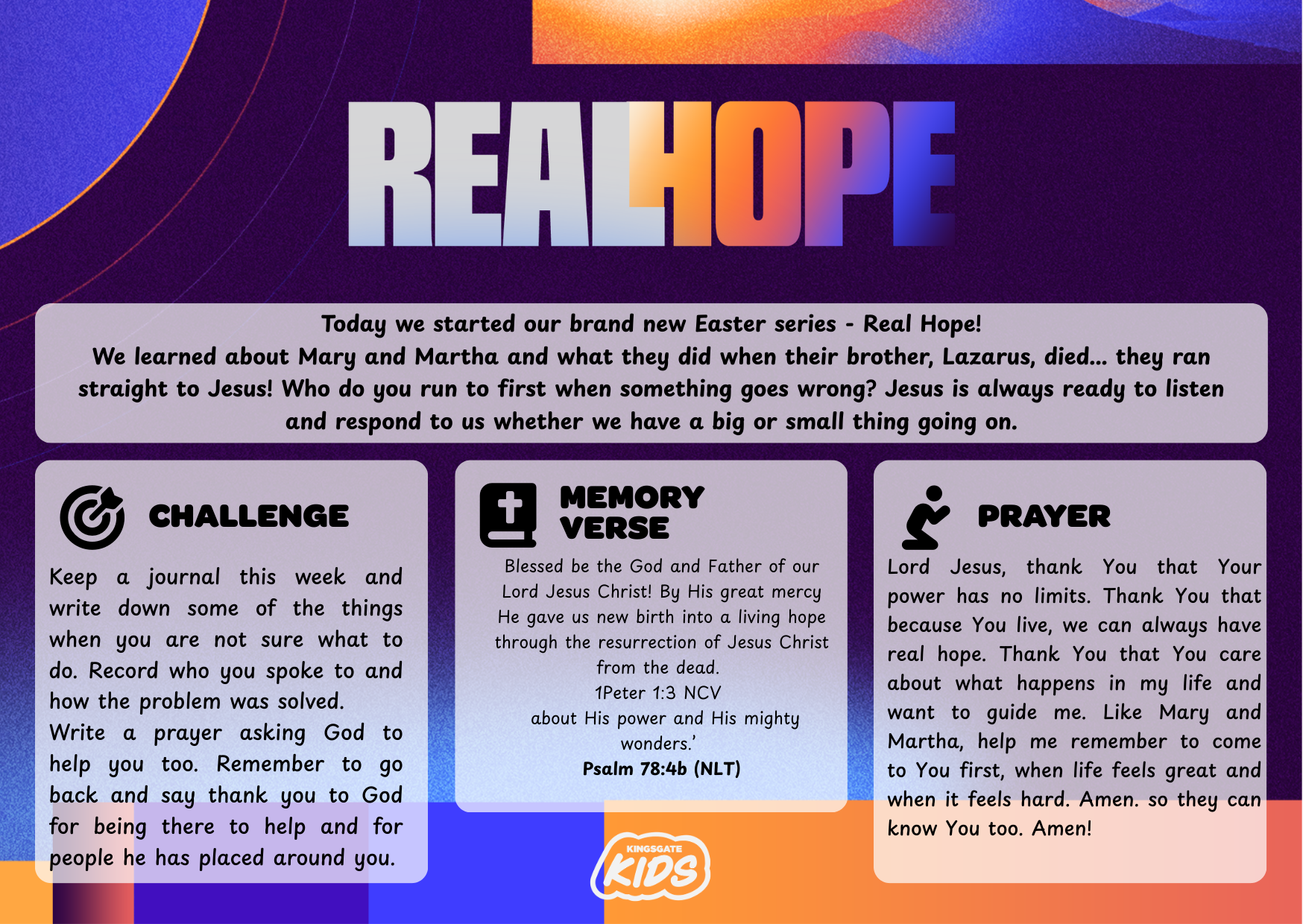 Lord Jesus, thank You that Your power has no limits. Thank You that because You live, we can always have real hope. Thank You that You care about what happens in my life and want to guide me. Like Mary and Martha, help me remember to come to You first,  when life feels great and when it feels hard. Amen.